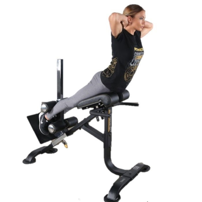 Sezutul si suportul pentru picioare sunt reglabile, astfel incat permite efectuarea exercitiilor din diverse unghiuri. Este singura banca de acest fel care ofera acces la efectuarea hiperextensiei la un unghi reglabil de 45-90 de grade.