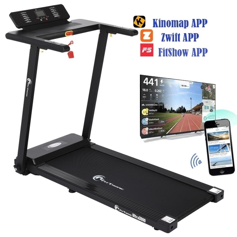 Banda de alergare electrica FitTronic Ultra 2000, motor 2.0 CP, App Fitshow, Kinomap, Zwift, viteza pana la 12km/h, suprafata alergare 110x42 cm, conexiune bluetooth, 12 programe de antrenament