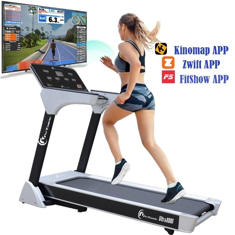 Banda de alergare electrica FitTronic Ultra 8000 dispune de posibilitatea de conectare prin bluetooth cu aplicatia FitShow, aplicatie ce o gasiti atat in App store cat si Googleplay.