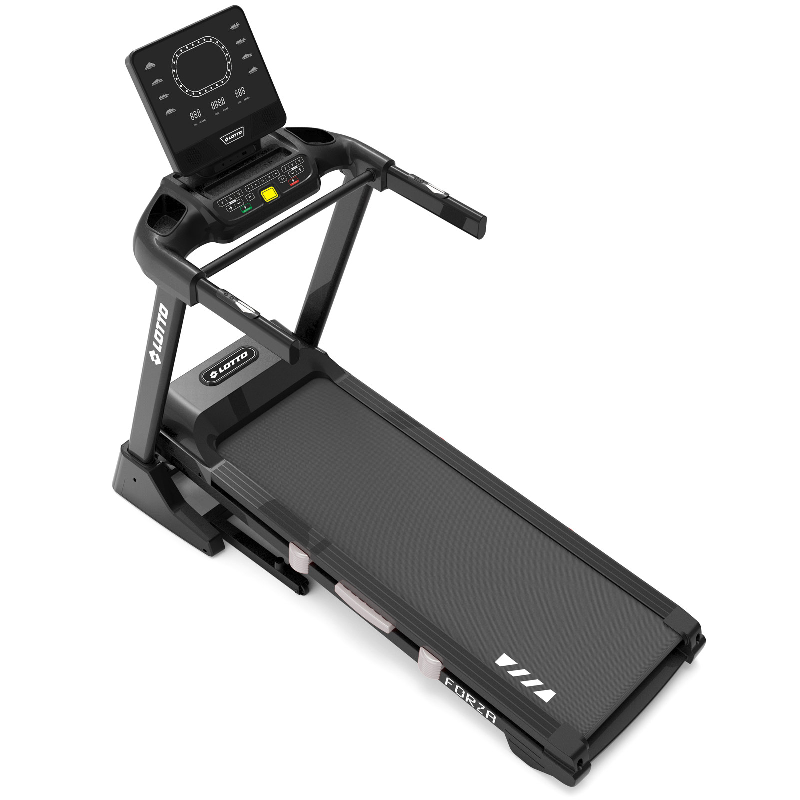 Cu 64 de programe presetate, 3 programe utilizator și 1 program manual, Lotto Forza se adaptează nevoilor tale specifice de antrenament. Funcții precum Body Fat monitorizează progresul tău, iar tastele rapide pentru viteza și inclinație pe manere îți oferă acces rapid la setările tale preferate.