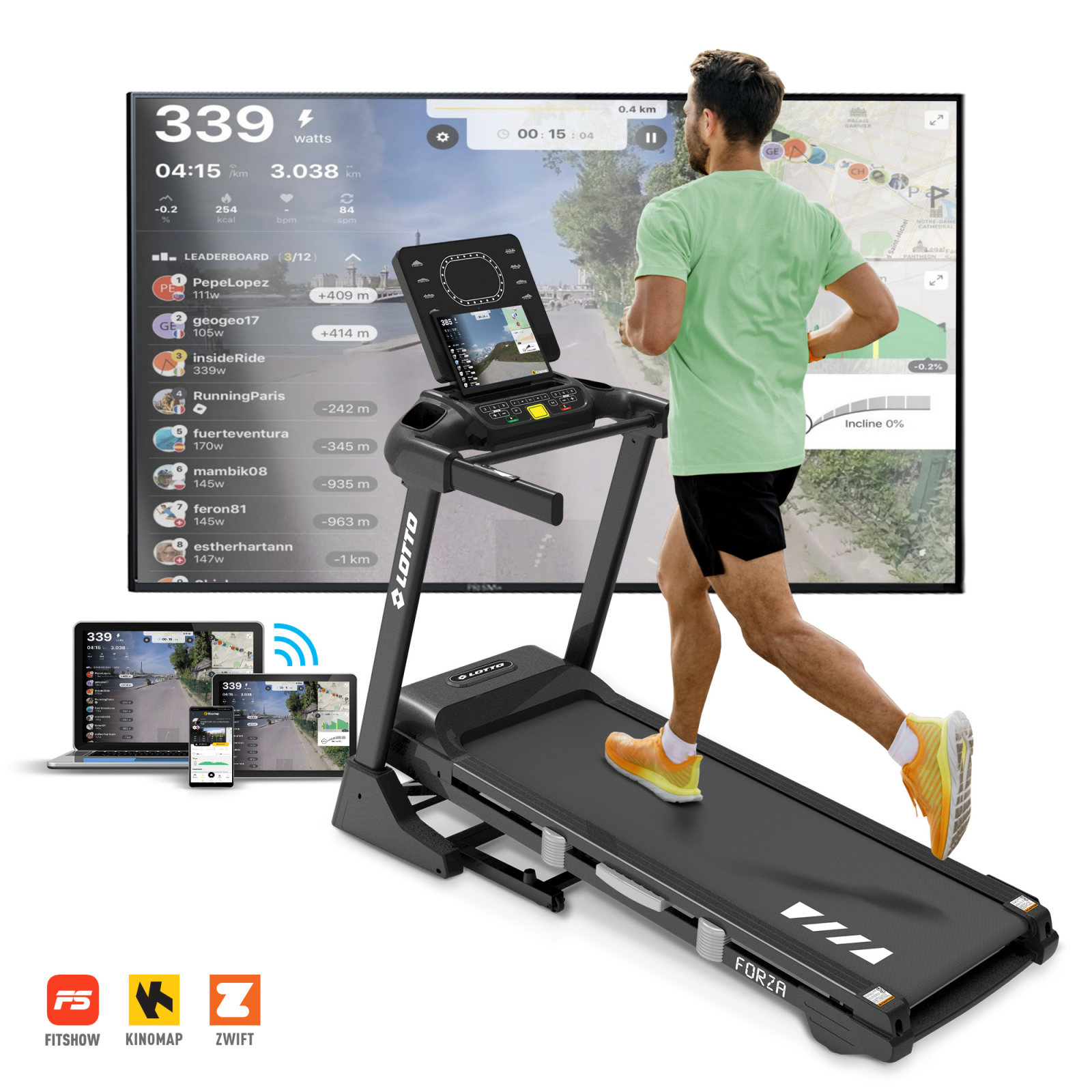 Cu un motor puternic de 4.25 CP, Lotto Forza atinge viteze între 1 și 18 km/h, oferindu-ți o varietate de opțiuni pentru diferitele nivele de antrenament. Inclinația motorizată ajustabilă în 15 trepte adaugă o dimensiune suplimentară în provocările tale de alergare.