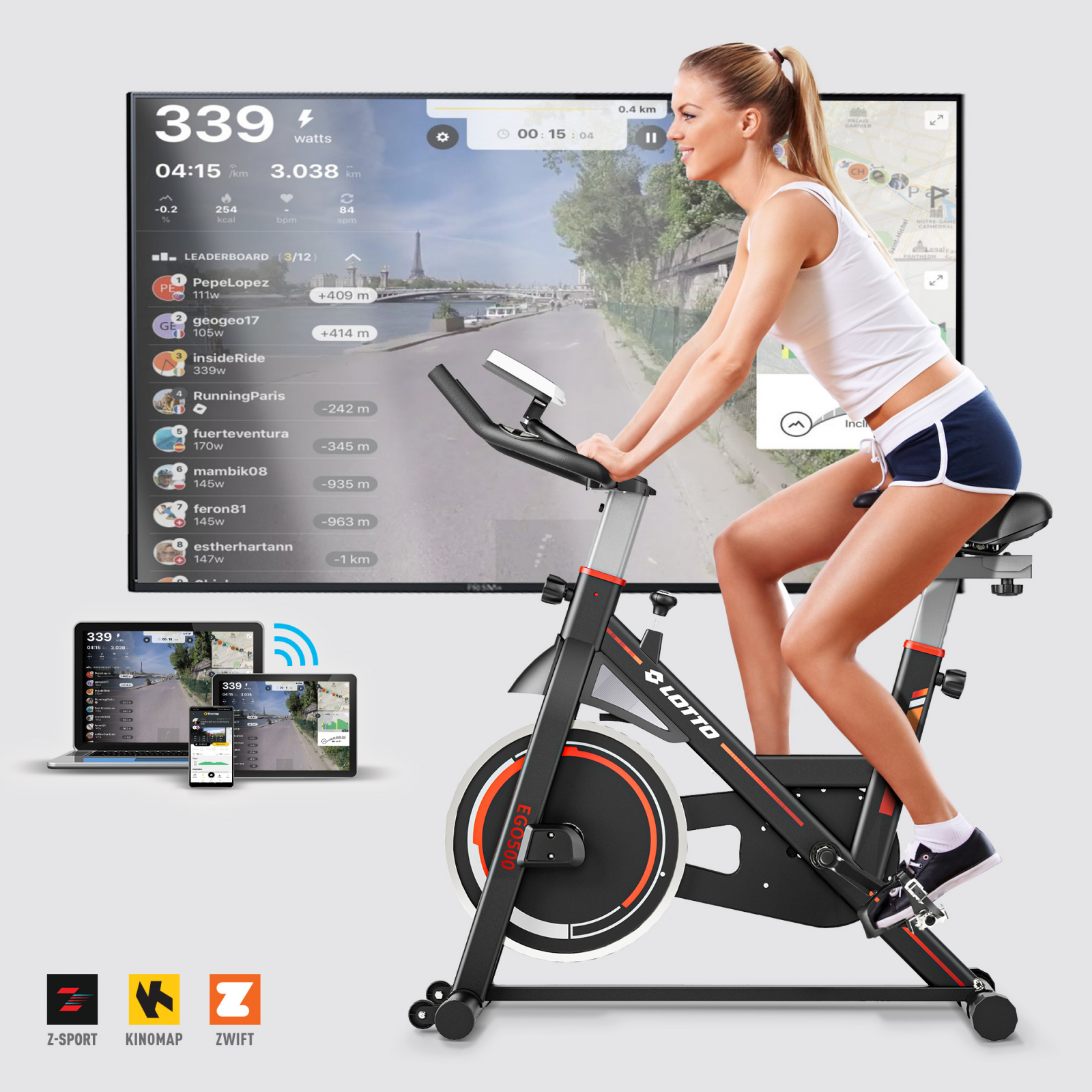 Conectivitate Avansată: Sincronizează bicicleta de spinning cu smartphone-ul sau tableta ta prin tehnologia Bluetooth și accesează antrenamente interactive și stimulative prin aplicațiile Z-Sport/Kinomap sau Zwift. Antrenează-te în lumi virtuale alături de alte persoane și urmărește-ți progresul în timp real pentru a-ți menține motivația la cote maxime.
