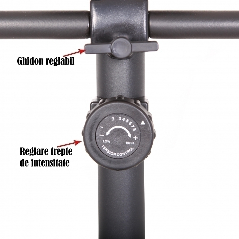 Saua bicicletei poate fi reglată vertical pentru a oferi o poziție confortabilă în timpul antrenamentului.Sistemul de franare magnetic garantează o funcționare lina și silențioasă.